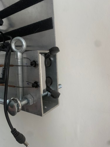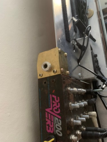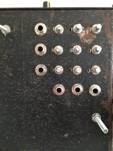 I made a scaled up version of the Plague Rider noise rig for the first All The Heavens Were A Bell live set, taking advantage of the fact that the All The Heavens material is slower and more texture based, and also requires more sound to fill it out, given that there are only two of us. To that end, this noise rig is made out of a bit of box aluminium almost as tall as I am, and kitted out with one big spring and a bunch of piano strings, as well as a circuit bent reverb unit. This is still very much a work in progress device, and as much as there is a load more room for pedals, I’m leaning toward adding in more sound sources into the additional space instead.