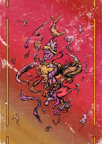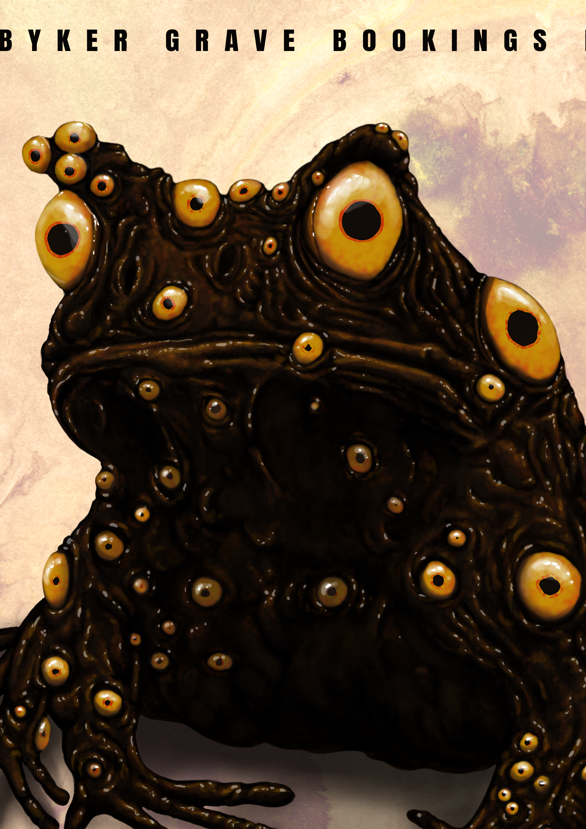 This was a pretty short notice job as Body Void and Bismuth needed to fill a date on their tour. Automatic brush pen drawing, worked into and coloured digitally. I think the background texture was some open source leather texture.