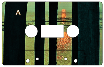 The images I was sent for this were really nice to work with as images in general, but also as visual elements to build the rest of the inlay and layouts from. Really satisfying in their simplicity. I shuffled the plectrums/shapes a tad out of grid on the cover so as to fit them around the dimensions of the cassette, and shuffled a few about to act as frames for the text on the inlay. I kept the font the same as used on previous designs (shown at the bottom of the page) to keep a thread of consistency running through the releases – something that design work for Cruel Nature allows me to do a lot.