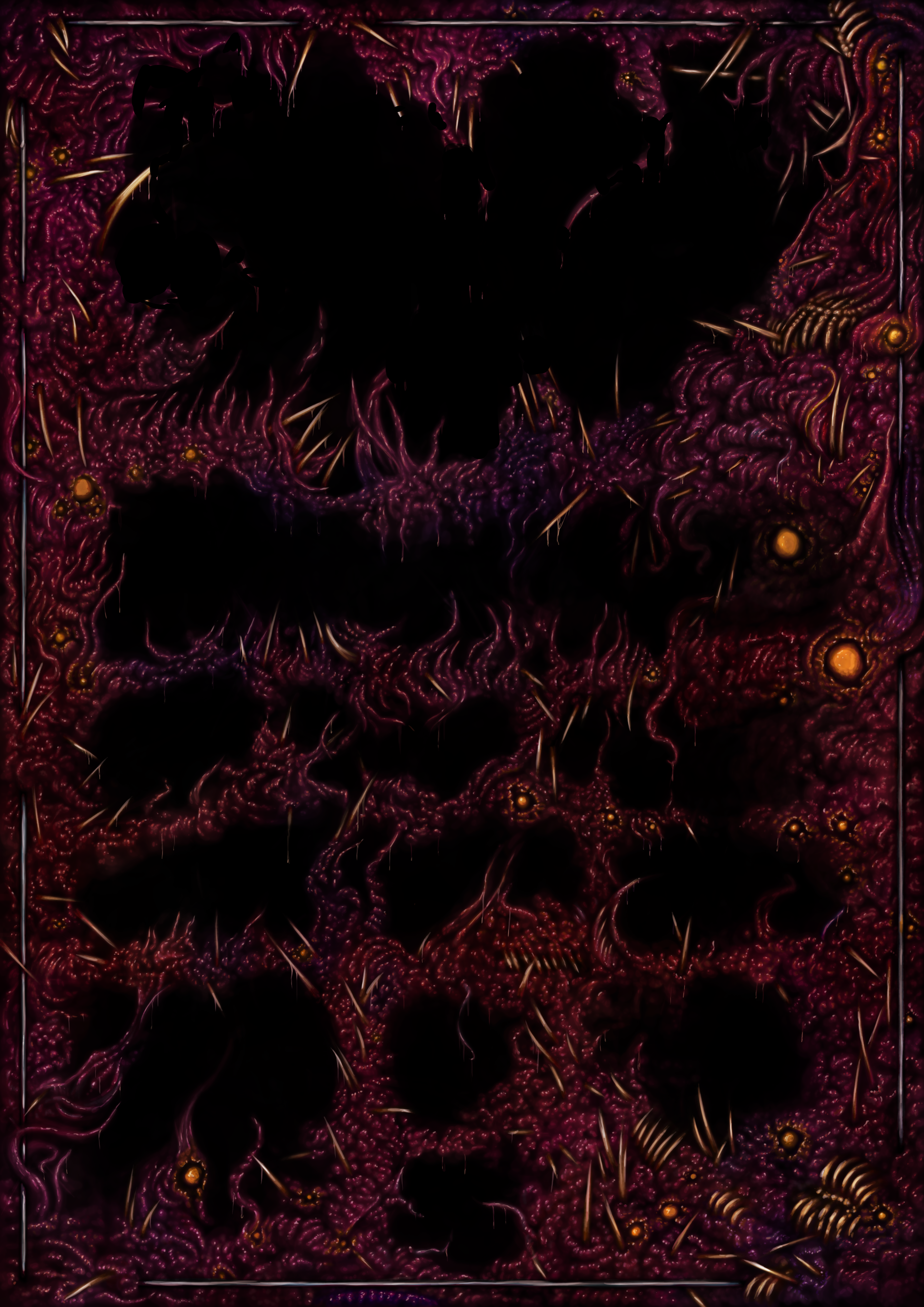 Trying to do a poster for something as logo heavy as an extreme metal festival doesnt give a lot of room for an actual scene or objects, so for this I opted with a wall of viscera, which given the lineup was actually a pretty good fit. Pretty stark high contrast ‘bruise’ coloured stuff for this. With the gaps for logos making it look a bit like a side scroller computer game, I leant into that aesthetic.