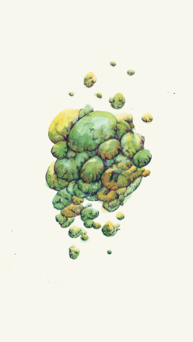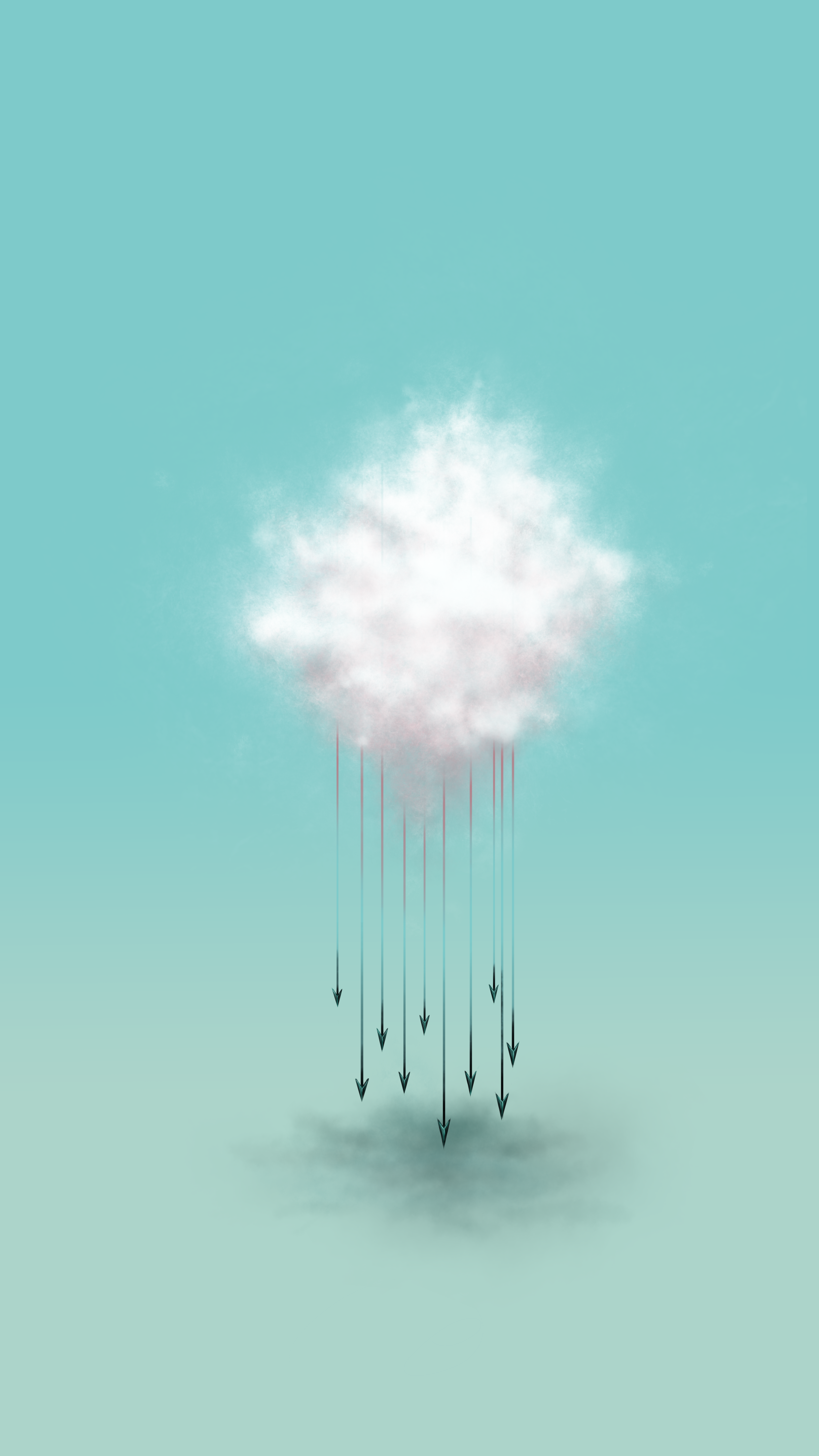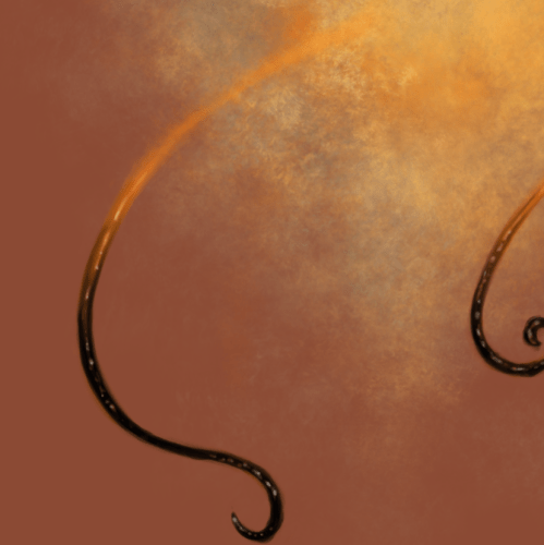 A pretty successful exercise in gaseous forms, this cloud was initially done as just a practice exercise, but held together well enough in space that I felt it needed some kind of addition to it to finish it off, so it developed these downward spears, which worked really well as a counterpoint to the softness of the cloud. The spears were done with selection tools and paths with a minimal bit of overpainting at the end, whereas the cloud was all blender brushes with a bit of airbrushing over the top.