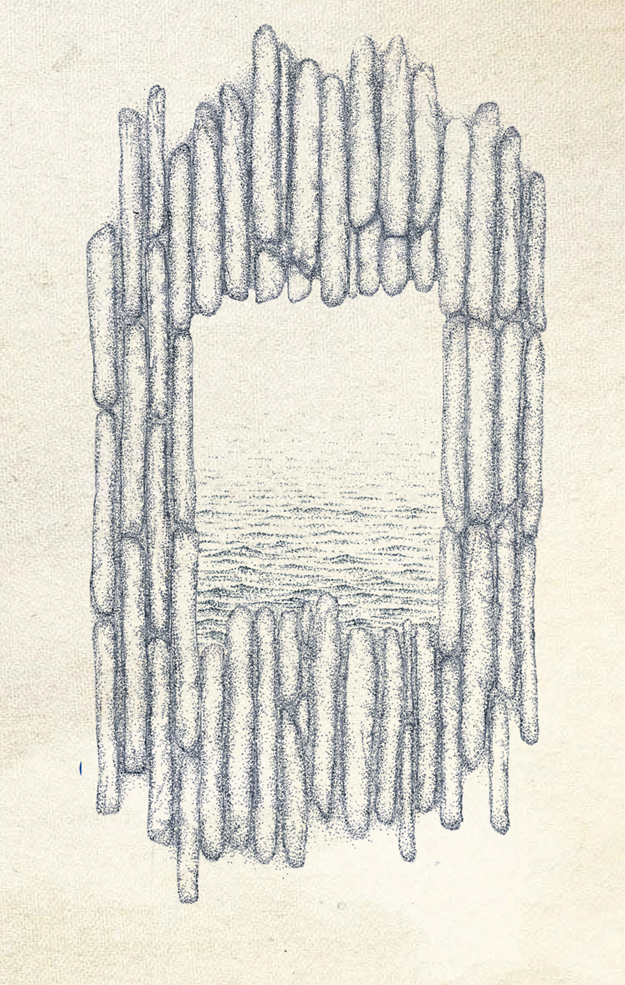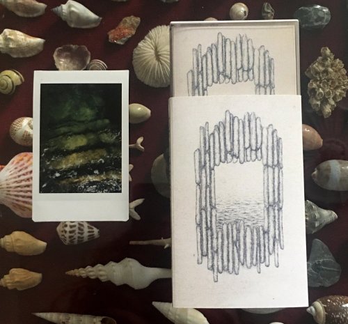 This Deathbird Stories release came with a different instax photo for each one and was tied loosely to Falmouth harbour, with has quite a particular stone structure. Given the transportative nature of the music I used that as a starting point for the portal you see below. This was done with dotwork ink on paper, recoloured digitally and layered over a textured background.