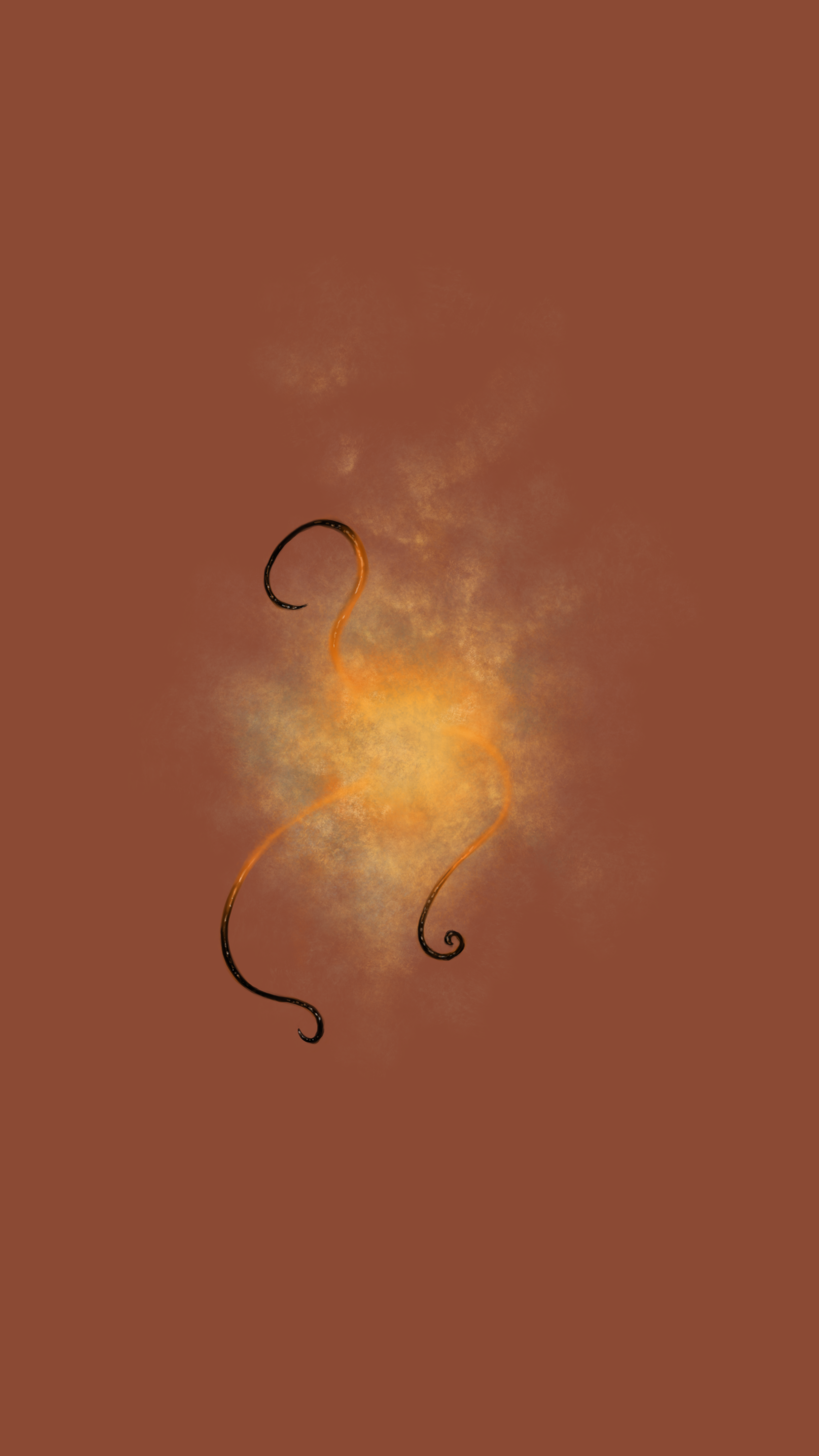 A quick energy creature from some scuzzy cloud-like brush strokes, worked up into some kind of energy cloud/portal. I faded in the start of the orange tones with an airbrush and shaded them into slick black as I imagined them solidifying as they emerged from the cloud.