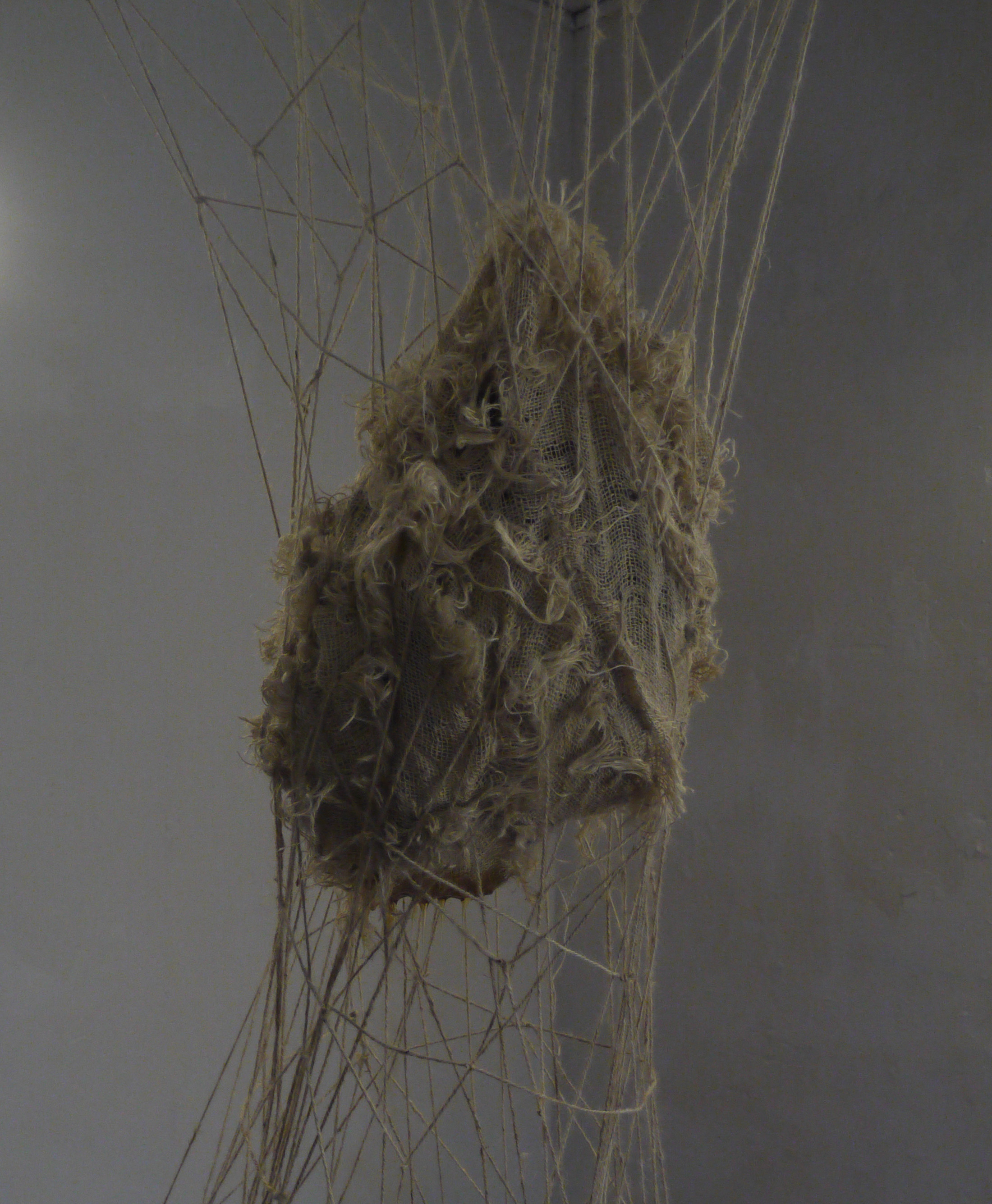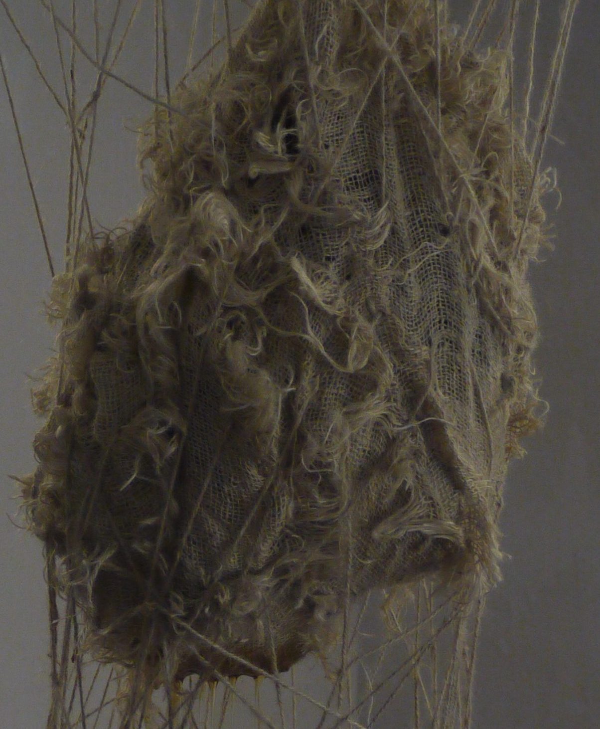 This image was taken of a test piece that I’d set up for an open studio that then went on to form the basis of a few other pieces that I was making with hessian and viscous fluids, but actually stands on its own as a image nicely. The original thing was a stitched together mass of hessian and string with scraps and a bunch of syrup poured inside, that slowly dripped out over the following few days into a rusty old crucible that I’d found.