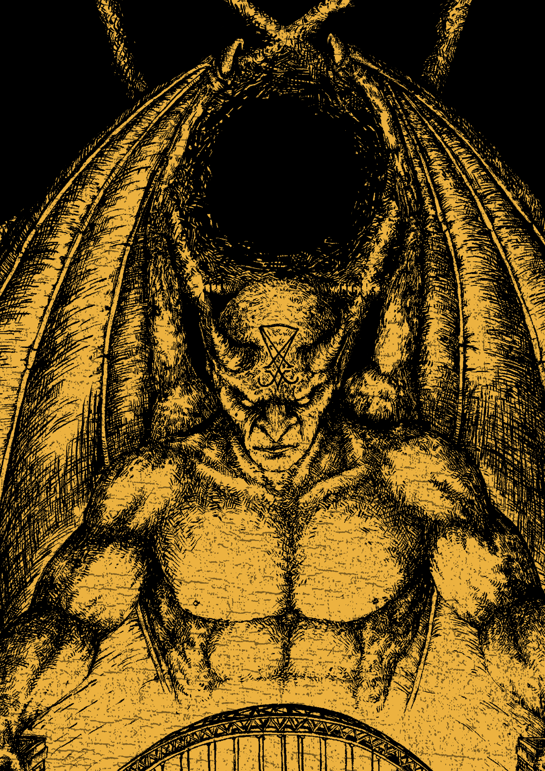 Tour poster for the 2014 Live Burial / Acatalepsy run, based on the same character from the Live Burial self titled art. Brush pen on paper, scanned and digitally coloured.