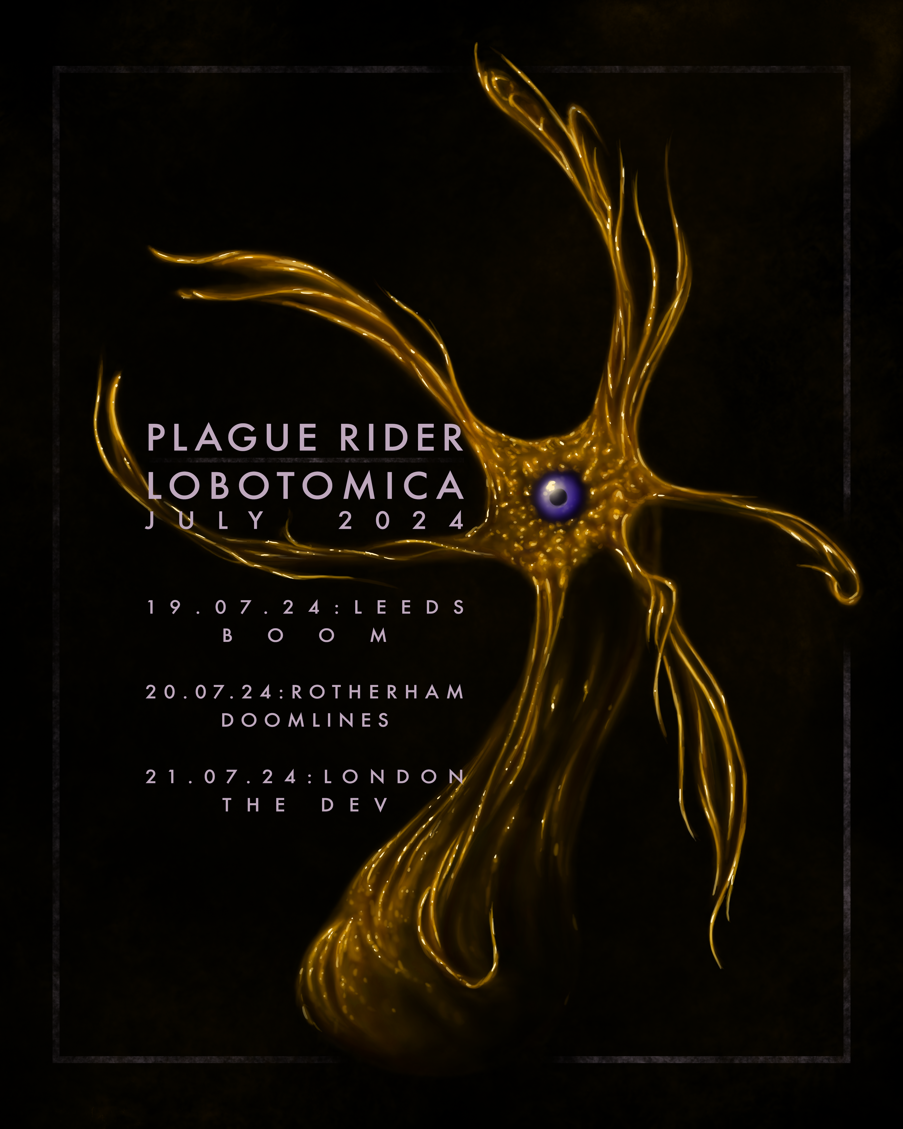 Quick tour poster put together for the Plague Rider / Lobotomica weekender. Based loosely around a hydra this was roughly scribbled up and then embellished before the text and border was added over the top.