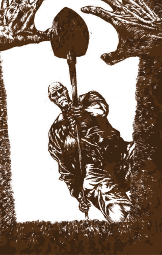 The title of this release is an obvious riff on Black Flag’s Loose Nut, and despite the image being different to the Black Flag album, the layout and font remained the same so I went down the brush pen route with the intention of doing something stylistically in keeping with Pettibon’s work. This was all scanned in and put together with the other design elements in photoshop.