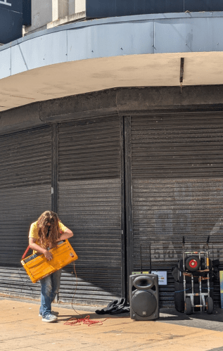 The first version of this was built for a one off gig with Pound Land, and then sat dormant/as a bit of a test rig for little while before I was asked to do a run of noise performances for The Auxiliary as part of Sonic Arts Week. This was a perfect opportunity to set it up properly and kit it out with its own internal battery pack and a few pick up options.