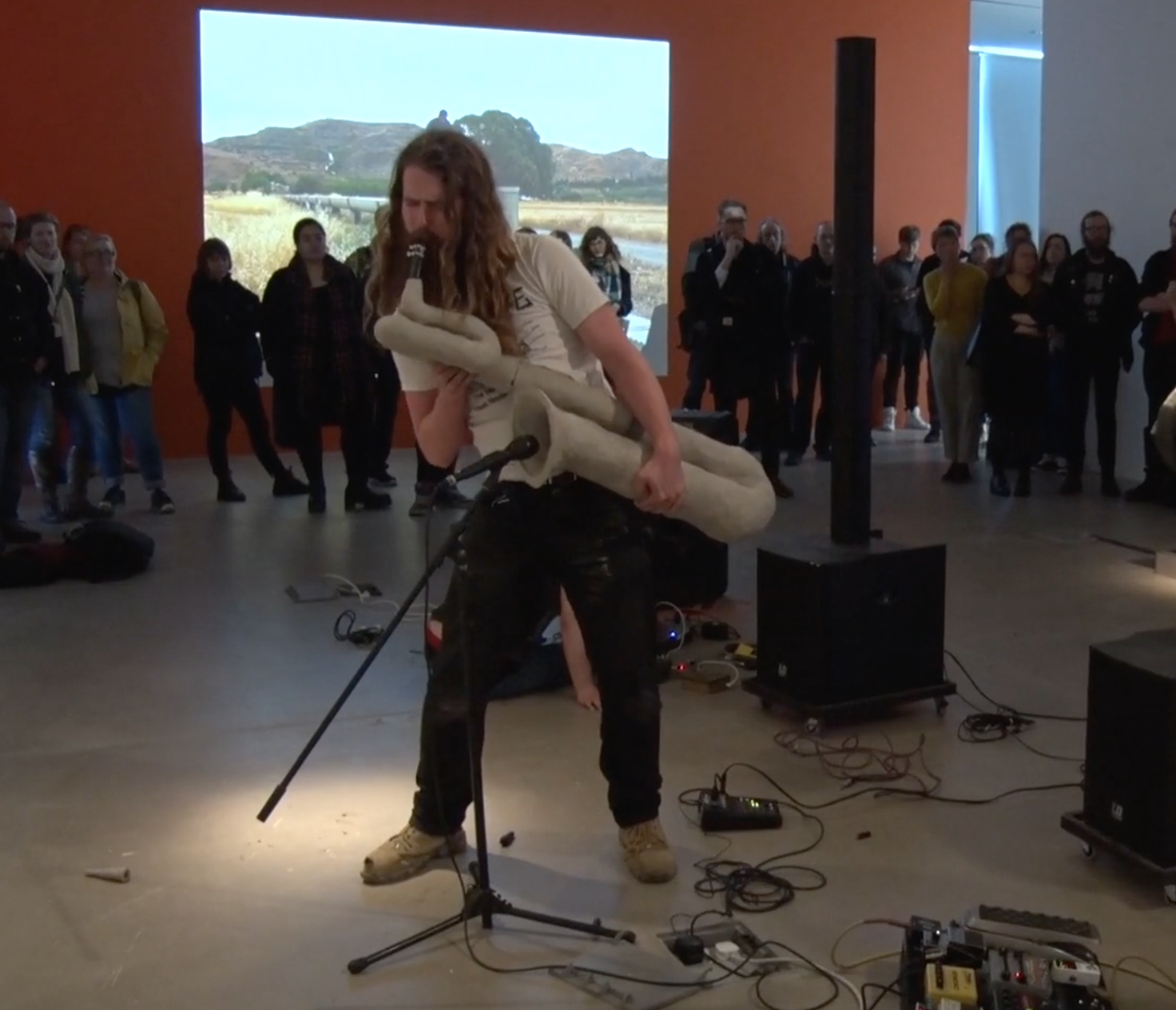 Stomach Lung was saxophone made of clay. Unpredictable in its final form and uncontrollable as instrument, it came at the beginning of me thinking about instruments as bodies and sound making as engaging with those bodies on their own terms. It was heavily tied in with the visceral sound making of extreme metal vocals and was set up to be gut like, as well as likely to collapse under its own weight. An uncomfortably heavy braying thing that exhausted itself and collapsed.