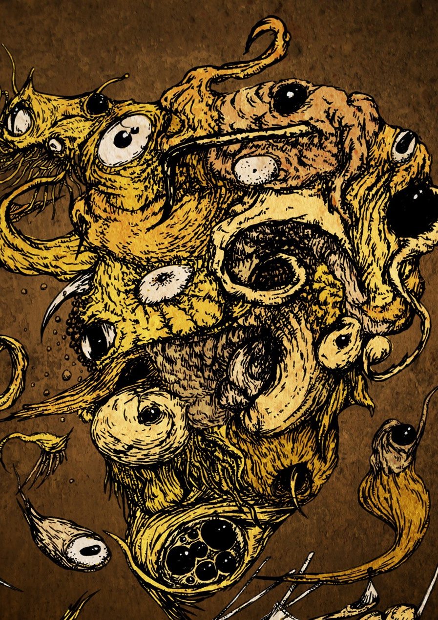 Unfortunately one of the gigs that was killed off by Covid, this was a bunch of automatic scribbles in brush pen that I then worked back into and coloured digitally. The layout was also by me, and I put a bunch of distressed paper textures over the top to give it an old pulp sci-fi cover kind of look.