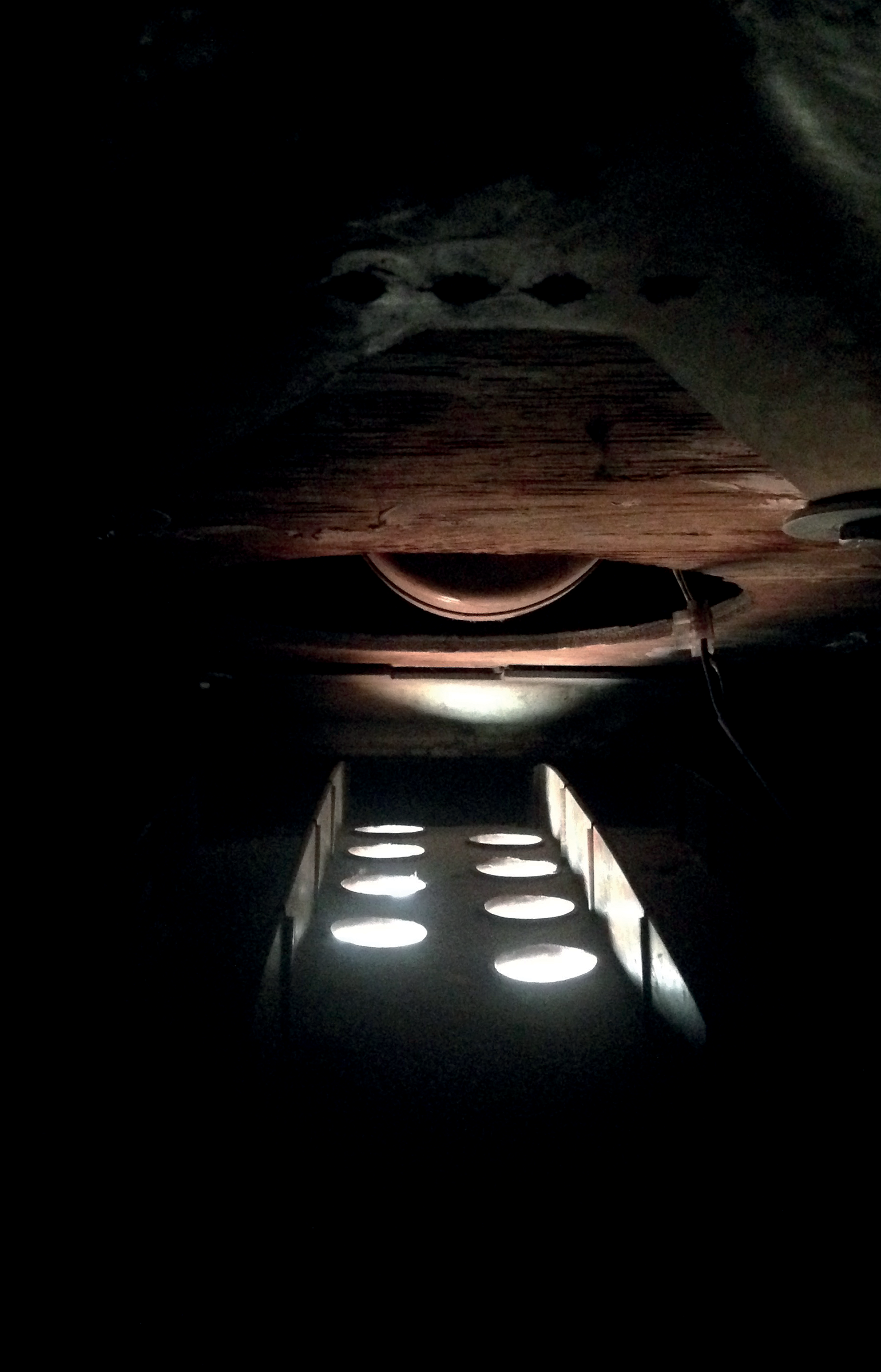 The cover image for this was taken of the innards of a very old, very rickety section of bowling ball return, from the brief period of my life when I worked as a maintenance man in a bowling alley. Similarly, the image on the inlay is taken from another section of the building where light seeped in through some venting. In both instances the darkness and lack of context put these things into a weird ‘sort of sci fi’ place where they could be chunks of dungeon, or ship, or machinery but there are no scale markers to give you any clues. It fit well with the manipulated and unnerving quality of the tracks on the split, I think.