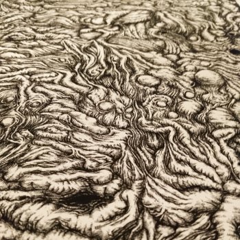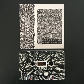 Around the same time I was working on the illustration below, putting down a square of work on it a day over the course of October and as the timelines coincided it seemed like the ideal cover, so I finished off the spare space with our names. This was all done with 0.1 unipin on decent quality art paper, and then was scanned in and turned into prints (now sold out) and used for cassette art for a release on Cruel Nature Records.